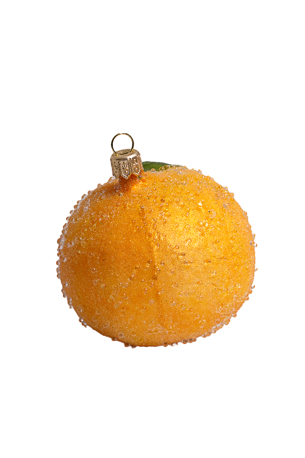 Апельсин в росе – волшебное украшение для новогодней елки диаметром 6.5 см, созданное в Польше. Этот изысканный апельсин, сверкающий словно покрытый утренней росой, добавит свежести и радости вашему праздничному декору. Яркий цвет и блестящие капельки создают уют и тепло, делая его жемчужиной коллекции елочных игрушек. Категория: Новинки, Фрукты/овощи.