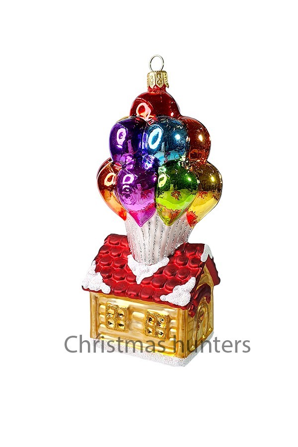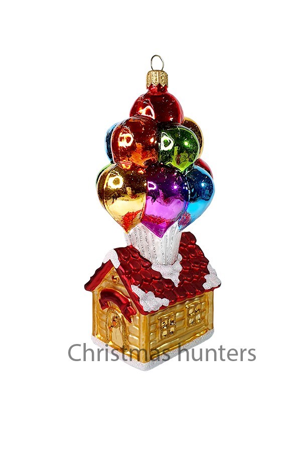 Домик на шариках — это уникальная ёлочная игрушка, которая мгновенно перенесёт вас в сказочный мир детства и волшебства. Изготовленный из изысканного стекла в Польше, этот красный домик высотой 16 см станет ярким акцентом на вашей новогодней ёлке. Его утончённые детали и насыщенный цвет создают атмосферу уюта и тепла, пробуждая в сердце самые тёплые воспоминания о зимних праздниках.